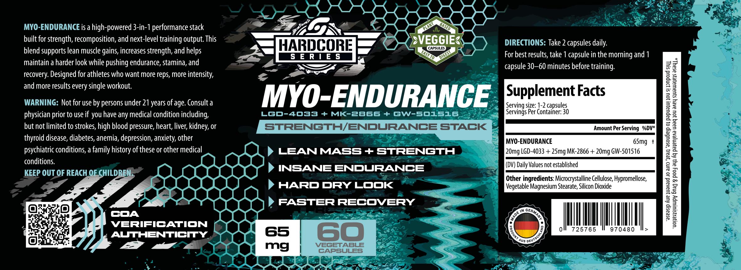 MYO-ENDURANCE is a high-powered 3-in-1 performance stack built for strength, recomposition, and next-level training output. This blend supports lean muscle gains, increases strength, and helps maintain a harder look while pushing endurance, stamina, and recovery. Designed for athletes who want more reps, more intensity, and more results every single workout.